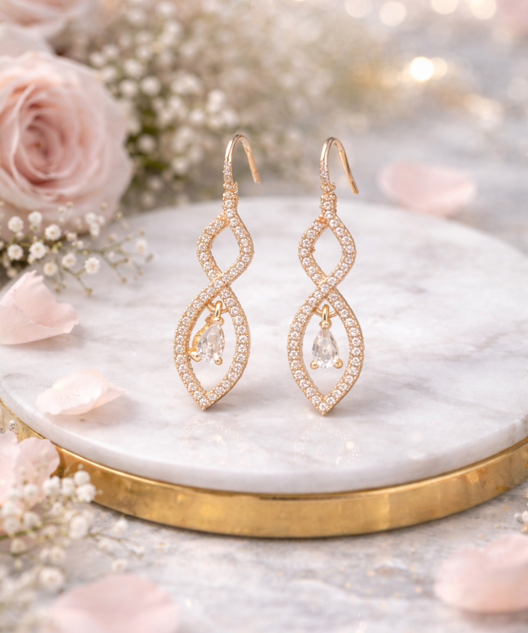 Add a touch of timeless elegance to your jewelry collection with these Golden Infinity Sparkle Drop Earrings, specially designed for women and girls who love graceful and classy accessories. The unique infinity-inspired design beautifully symbolizes eternal beauty and sophistication, making these earrings a perfect blend of modern style and classic charm.