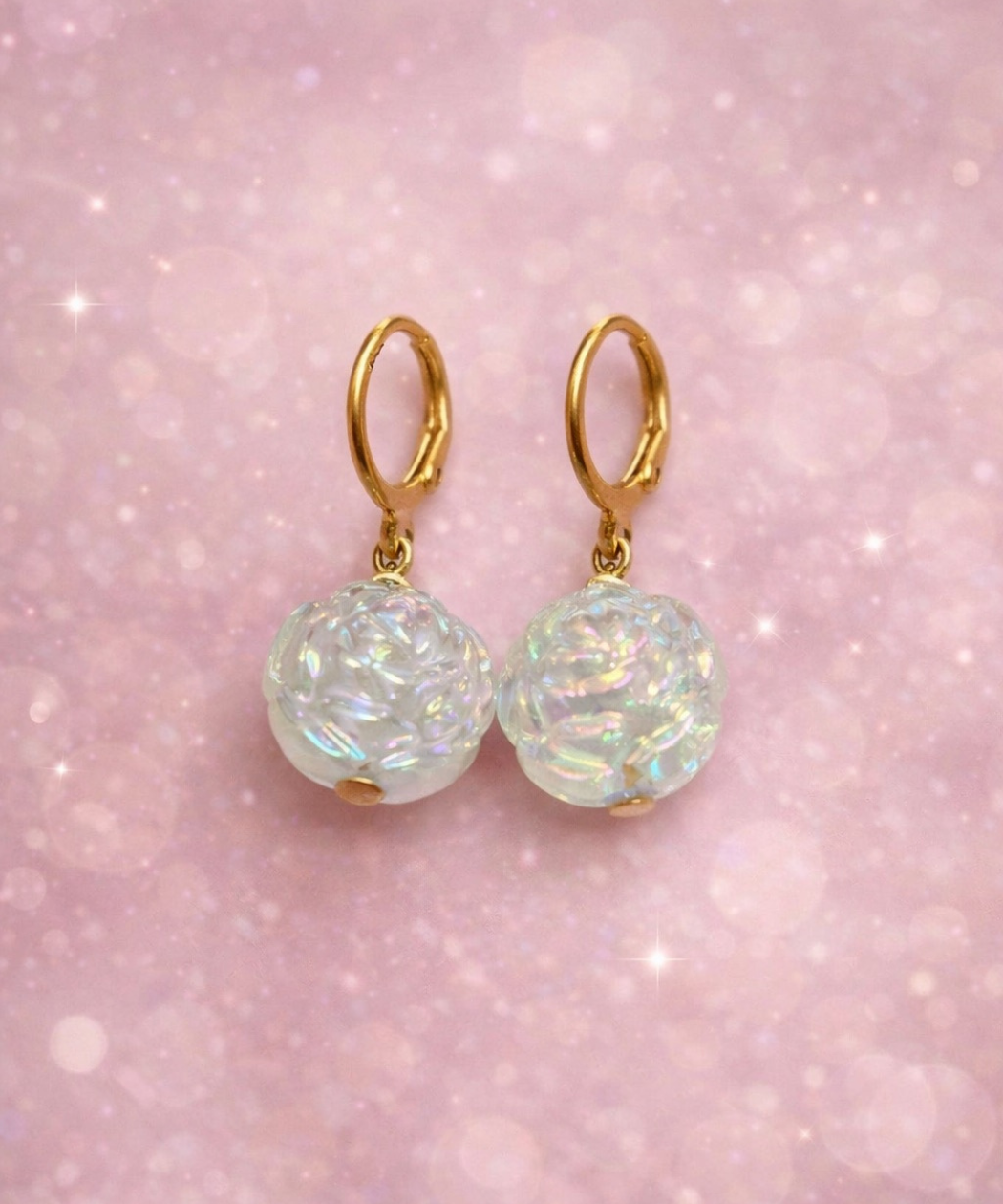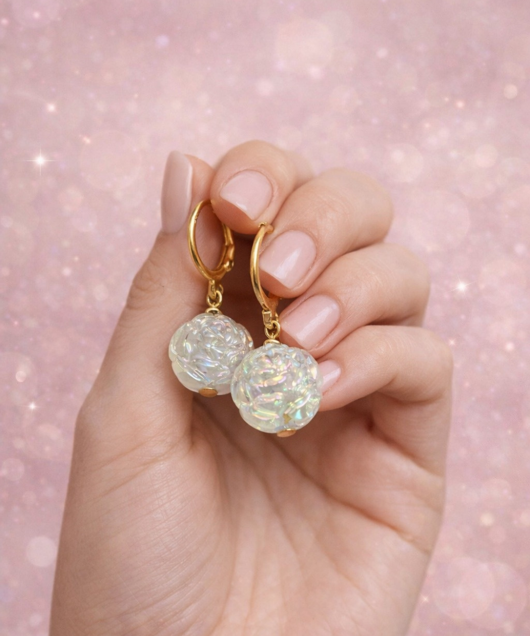 Add a touch of soft sparkle to your style with these Elegant Gold Plated Iridescent Bead Drop Earrings. Designed to capture light beautifully, these earrings feature a delicate gold-finish hoop paired with a luminous iridescent bead that reflects subtle rainbow hues with every movement.