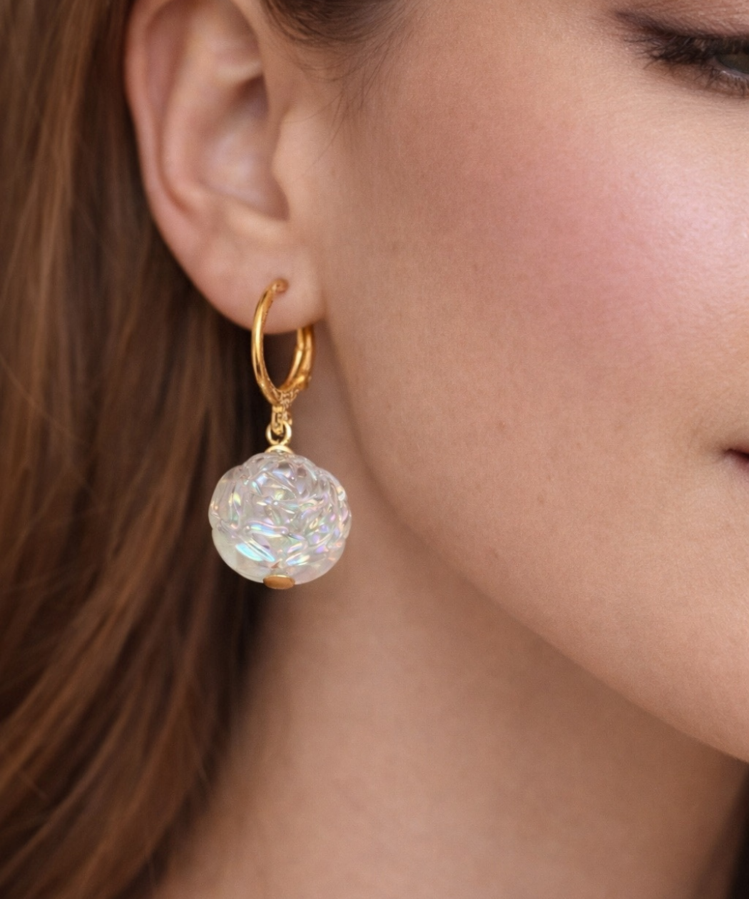 The smooth, textured bead creates a pearl-like glow, giving these earrings a dreamy and graceful appeal. Lightweight and comfortable to wear, they are perfect for long hours without causing any discomfort, making them ideal for everyday elegance.